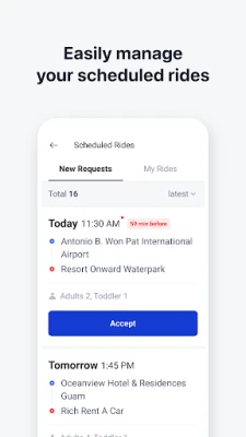 Confirm and browse on-demand and scheduled ride requests at once without wasting time.