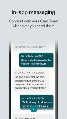 The PRISM App allows users to seamlessly communicate and share health information with their PRISM care partner, a dedicated healthcare professional who is assigned to them as part of the PRISM program to guide them on their recovery journey.