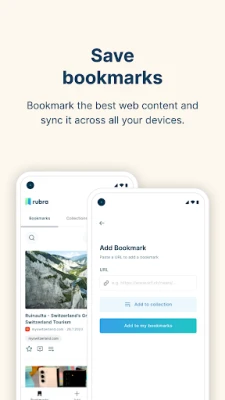 With rubra, you can get started right away without setting up an account. If you prefer to have your bookmarks synced and easily accessible across devices, setting up an account is an easy and convenient option. The choice is yours.